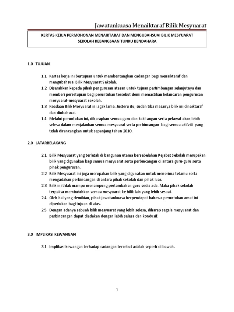 Kertas Kerja Bilik Mesyuarat Pdf